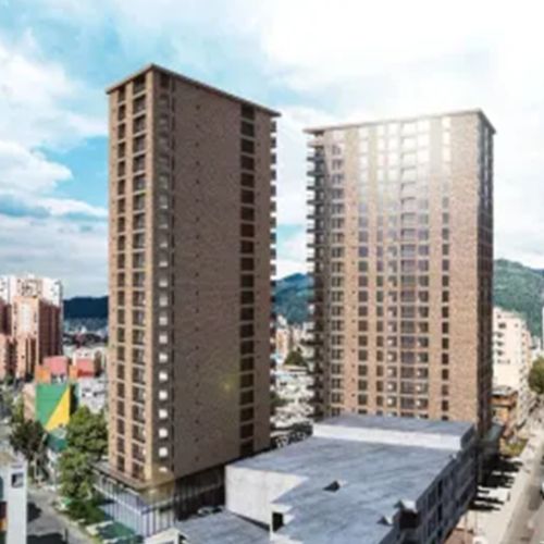 Descripción: 2 Torres de vivienda de 23 pisos y cubierta, con 4 sótanos de parqueaderos y plazoleta en piso 1.