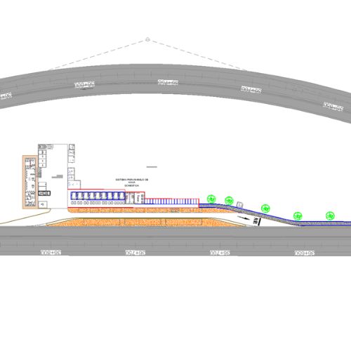 Descripción: Edificio de 1 piso para las oficinas del peaje y puesto de control y cobro de peaje.